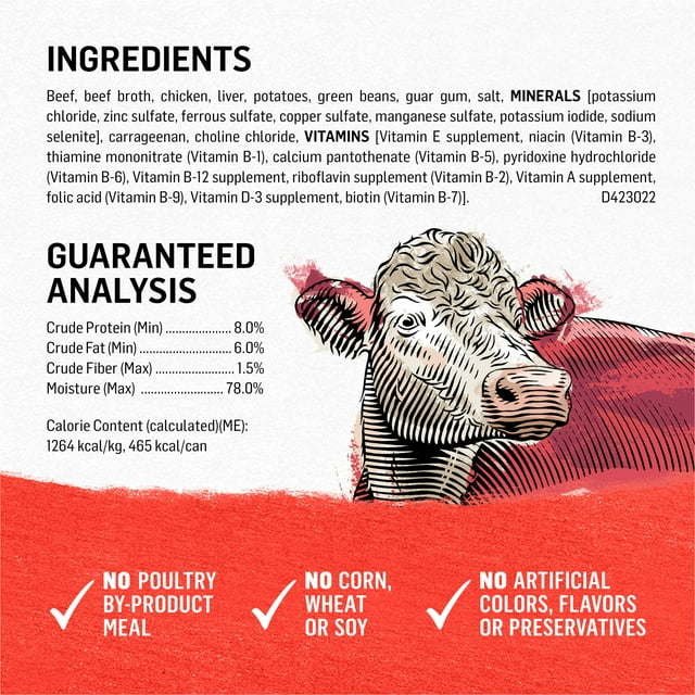 High protein wet dog food made with Texas beef as the #1 ingredient (Texas-raised for a minimum of 100 days)